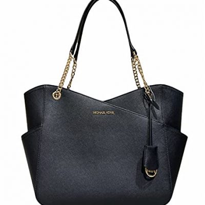 Michael Kors Jet Set Travel Large Top Zip Chain Tote Black Saffiano Leather |