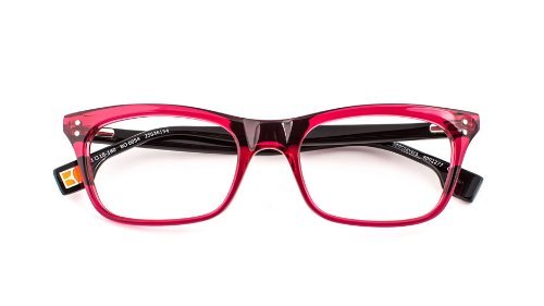 A hint of cat’s eye adds another element of glamour to this beautifully coloured frame. The red sides give this frame a strong, highly fashionable identity.