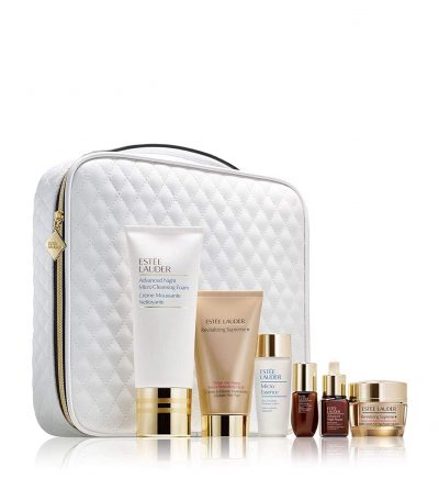 Quantities are limitedshop now. Get 6 skincare essentials that reveal a gorgeous glow for the festive season and beyond. Includes the power pair of Advanced Night Repair serum and Revitalizing Supreme+ Creme for radiant, healthy-looking skin. Plus the new Eye Supercharged Complex to reveal bright, hydrated, visibly revived eyes, full-size cleanser and face mask, and more, all in a travel bag. VALUE SET This exceptional skincare collection includes a deluxe travel bag filled with: Advanced Night Micro Cleansing Foam, 3.4 oz./100ml (full-size) Revitalizing Supreme+Instant Refinishing Facial, 2.5 oz./75ml (full-size) Advanced Night Repair Eye Concentrated Matrix Synchronized Recovery, .17 oz./5ml (deluxe travel size) Advanced Night Repair Synchronized Recovery Complex II, .24 oz./7ml(deluxe travel size) Revitalizing Supreme+Global Anti-Aging Creme, .5 oz./15ml(deluxe travel size) Micro Essence Skin Activating Treatment Lotion, 1 oz./30ml (deluxe travel size)