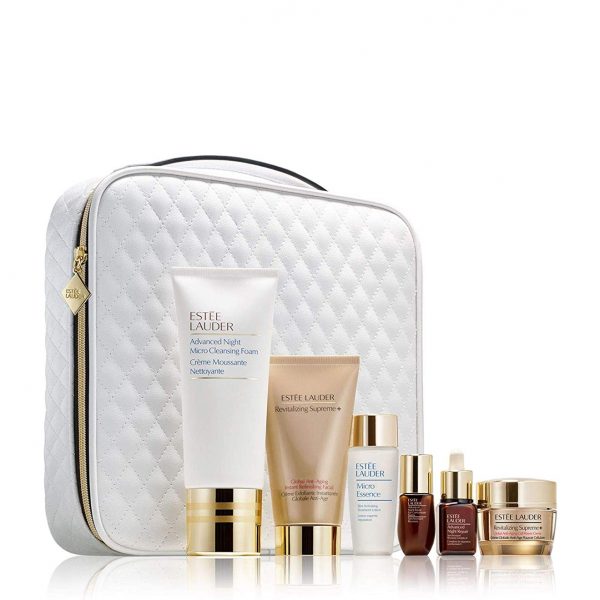 Quantities are limitedshop now. Get 6 skincare essentials that reveal a gorgeous glow for the festive season and beyond. Includes the power pair of Advanced Night Repair serum and Revitalizing Supreme+ Creme for radiant, healthy-looking skin. Plus the new Eye Supercharged Complex to reveal bright, hydrated, visibly revived eyes, full-size cleanser and face mask, and more, all in a travel bag. VALUE SET This exceptional skincare collection includes a deluxe travel bag filled with: Advanced Night Micro Cleansing Foam, 3.4 oz./100ml (full-size) Revitalizing Supreme+Instant Refinishing Facial, 2.5 oz./75ml (full-size) Advanced Night Repair Eye Concentrated Matrix Synchronized Recovery, .17 oz./5ml (deluxe travel size) Advanced Night Repair Synchronized Recovery Complex II, .24 oz./7ml(deluxe travel size) Revitalizing Supreme+Global Anti-Aging Creme, .5 oz./15ml(deluxe travel size) Micro Essence Skin Activating Treatment Lotion, 1 oz./30ml (deluxe travel size)