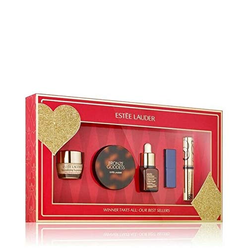 Winner takes all! Glow on the go with our best sellers in skincare and makeup. Limited-edition collection includes: Revitalizing Supreme+ Global Anti-Aging Cell Power Creme .24 oz./7ml (deluxe travel size) Advanced Night Repair Synchronized Recovery Complex II .24 oz./7ml (deluxe travel size) Bronze Goddess Powder Bronzer in Medium, .19 oz./5.4g(deluxe travel size) Pure Color Envy Sculpting Lipstick in Envious, .04 oz./1.2g (deluxe travel size) Sumptuous Extreme Lash Multiplying Volume Mascara in Extreme Black, .1 oz./2.8ml (deluxe travel size) How to Use Apply Advanced Night Repair AM and PM on clean skin before your moisturizer. Apply Revitalizing Supreme+ Creme AM and PM after your serum. Sculpt cheeks with Bronze Goddess Bronzer, sweeping it under cheekbones from ear to corner of lips. Glide Pure Color Envy Lipstick over lips. Define top and bottom lashes with Sumptuous Extreme Mascara.