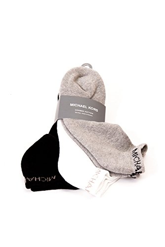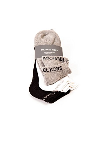 Michael Kors combed cotton ankle socks- one size (US 7-12, EUR 40-46, UK 6.5-11) in grey, black and white. 3 pack of socks with the signature MICHAEL KORS logo across the band
